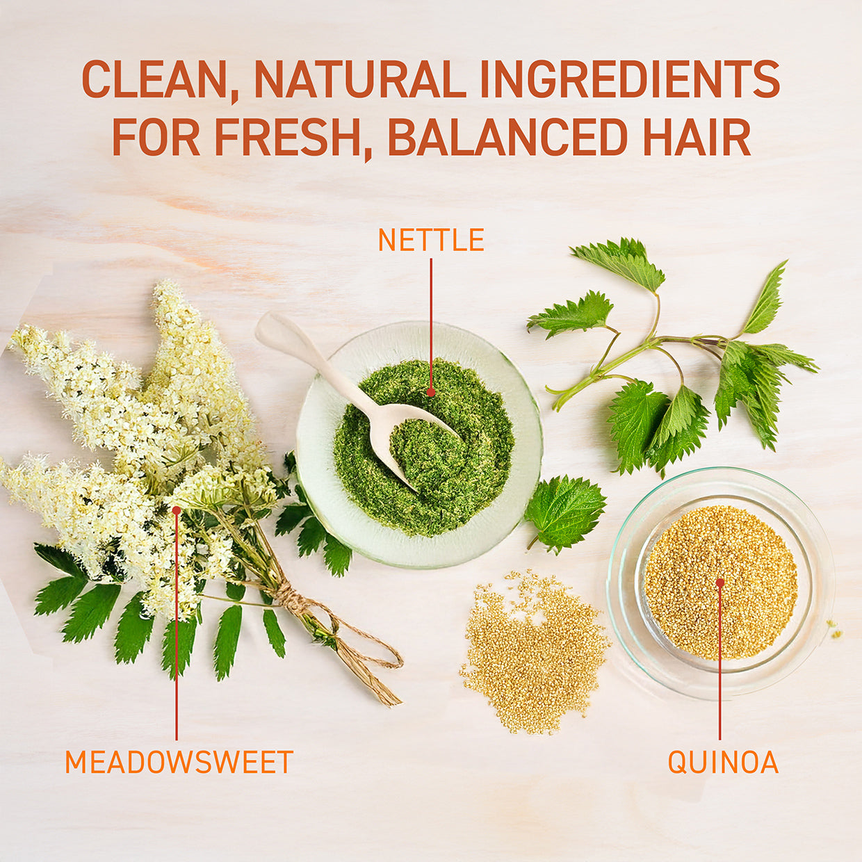 Meadowsweet is a soothing herb with natural astringent that helps control oils while hydrating hair.