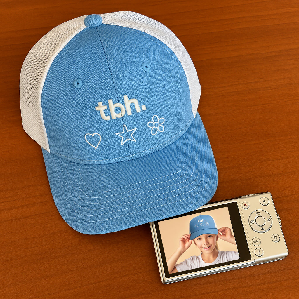 This limited-edition tbh® hat is the ultimate add-to-cart for tweens who want to show up bold, cool, and confident. With a comfy adjustable fit, breathable fabric, and our signature logo stitched front and center, it’s the kind of everyday essential that levels up any look—whether it’s post-practice, weekend hangs, or just not-a-good-hair-day vibes.